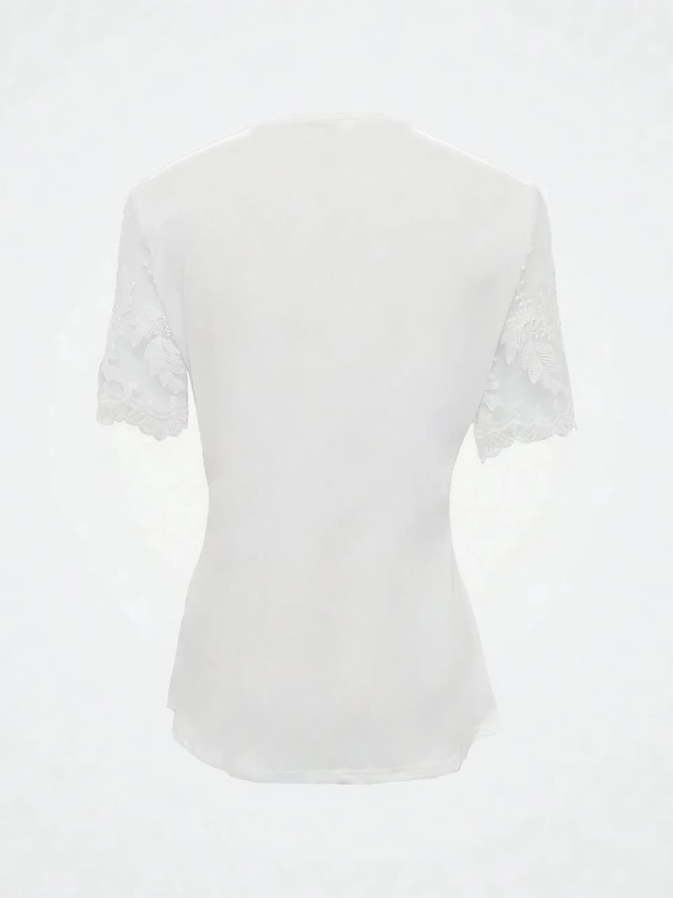 ✨ Elegant & Versatile Notched Lace Short Sleeve Top ✨
