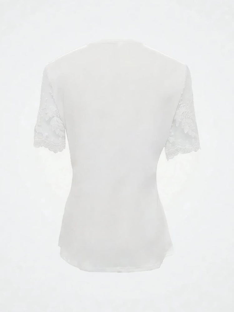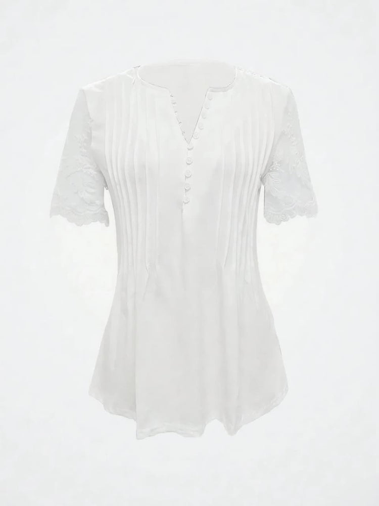 ✨ Elegant & Versatile Notched Lace Short Sleeve Top ✨