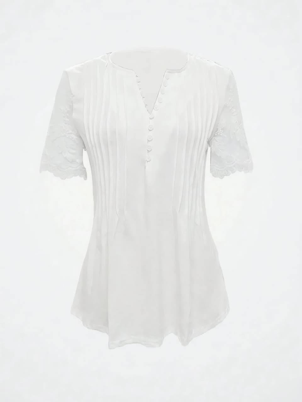 Women’s Notched Lace Short Sleeve Top – Elegant Summer Blouse for Casual & Dressy Outfits