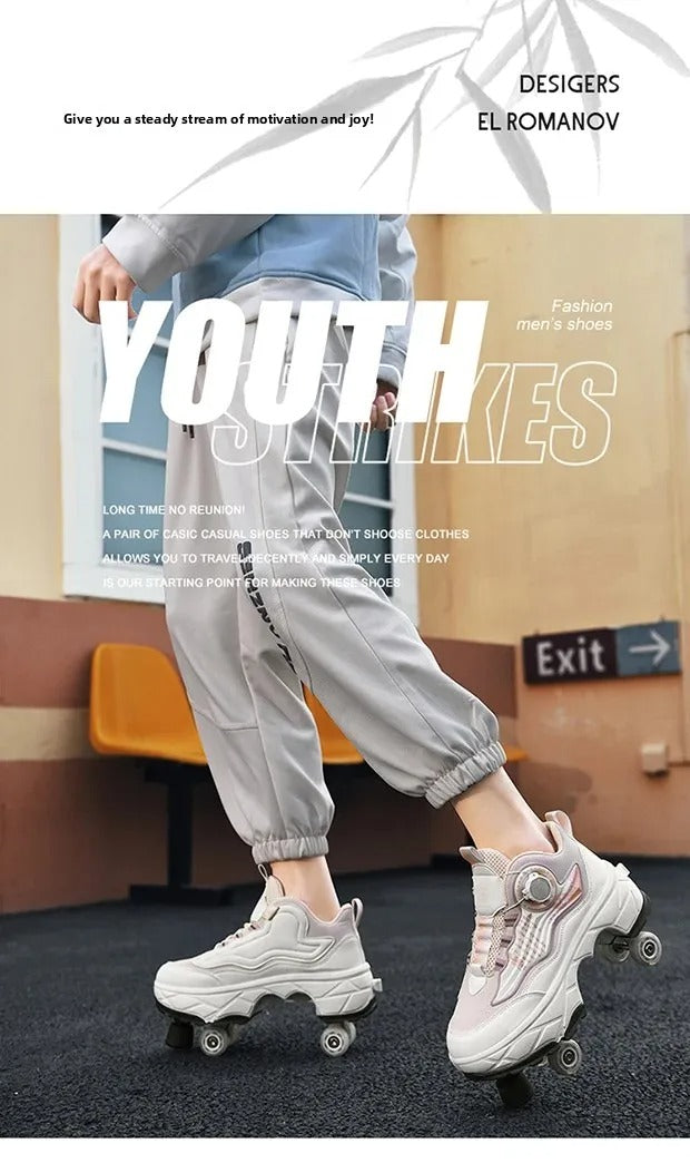 2-in-1 Deformation Design: Easily switch between regular walking shoes and roller skates.