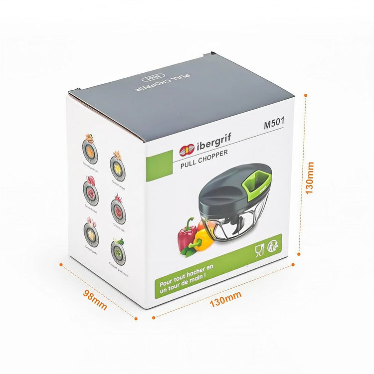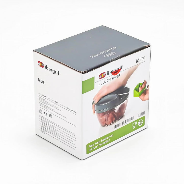 Make meal prep faster and easier with the Ibergrif M501 Pull Chopper – a multi-functional manual food processor designed to handle onions, garlic, nuts, fruits, and vegetables with ease. With a simple pull of the cord, the sharp stainless-steel blades chop, mince, or puree ingredients in seconds – no electricity required.