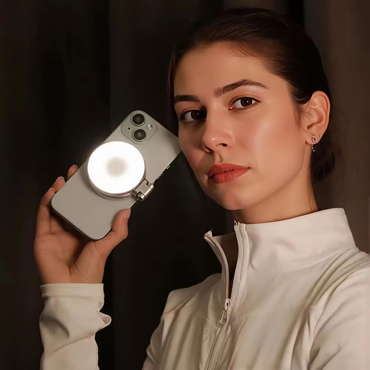 Capture flawless selfies and videos with this rechargeable LED selfie light designed for smartphones. Featuring a built-in mirror and magnetic clip-on design, this portable light is perfect for selfies, makeup touch-ups, photography, live streaming, and video conferencing.